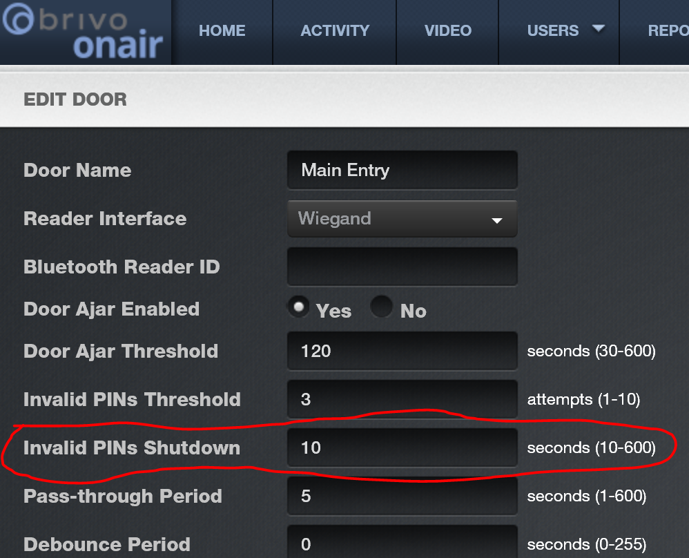 You have a shutdown period after too many attempts have been made. That period can be set from 10 seconds to 5 minutes before another PIN can be entered. If I continued to enter PINs in that period of time, the system will not register any of those inputs. Go to SETUP >> Sites/Doors >> Sites, then click on the door name to setup and Edit that door.