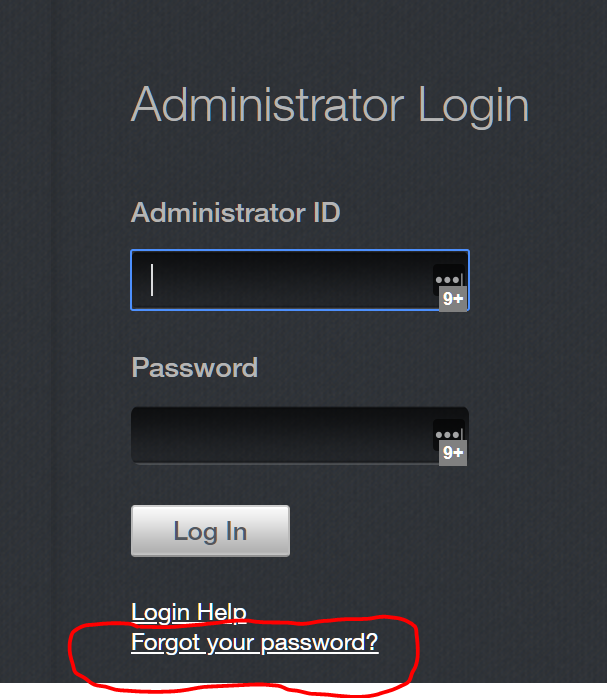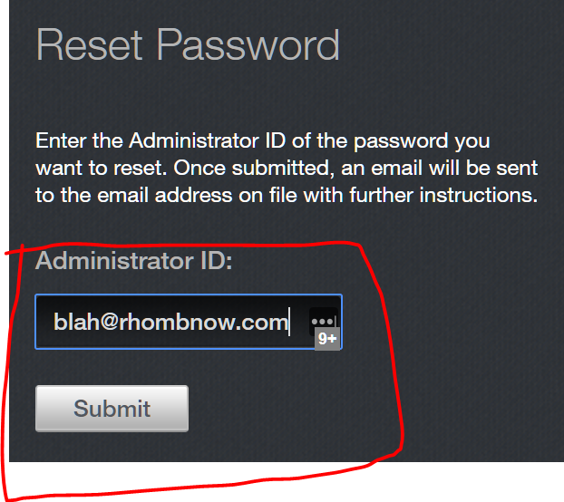 In the event you forget your password you need to use the "Forgot Password" link on the Brivo login page. You will need to know your Administrator ID, which should be an email address (if Latitude Security setup your login). Click the Forgot Password link, circled below in the image, then enter your Administrator ID to have a password reset link emailed to you from the Brivo system.