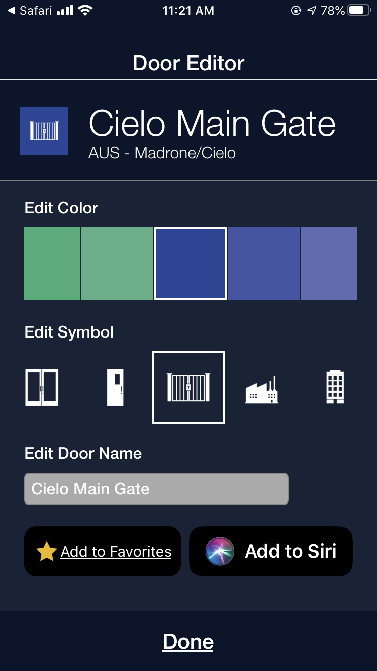 These settings will allow the app to automatically activate when you are near the door and allow you to open the door from your home screen. You can also use Siri to voice activate the app.