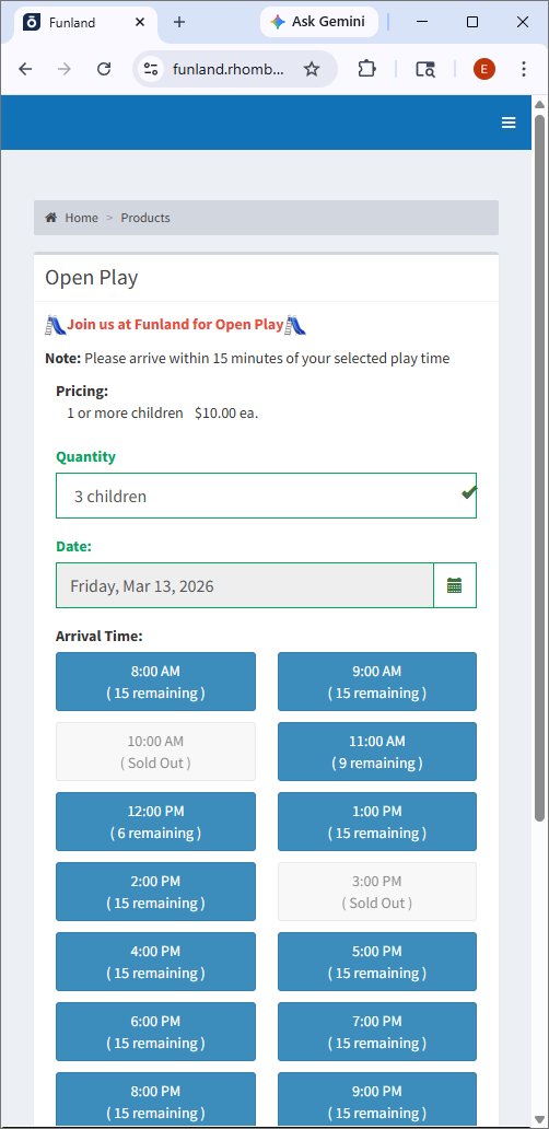 - Customer selects: Date, time block, and number of spots