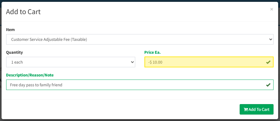 Click the box titled Price Ea. to update the price to a negative amount that reflects the discount you want to apply.