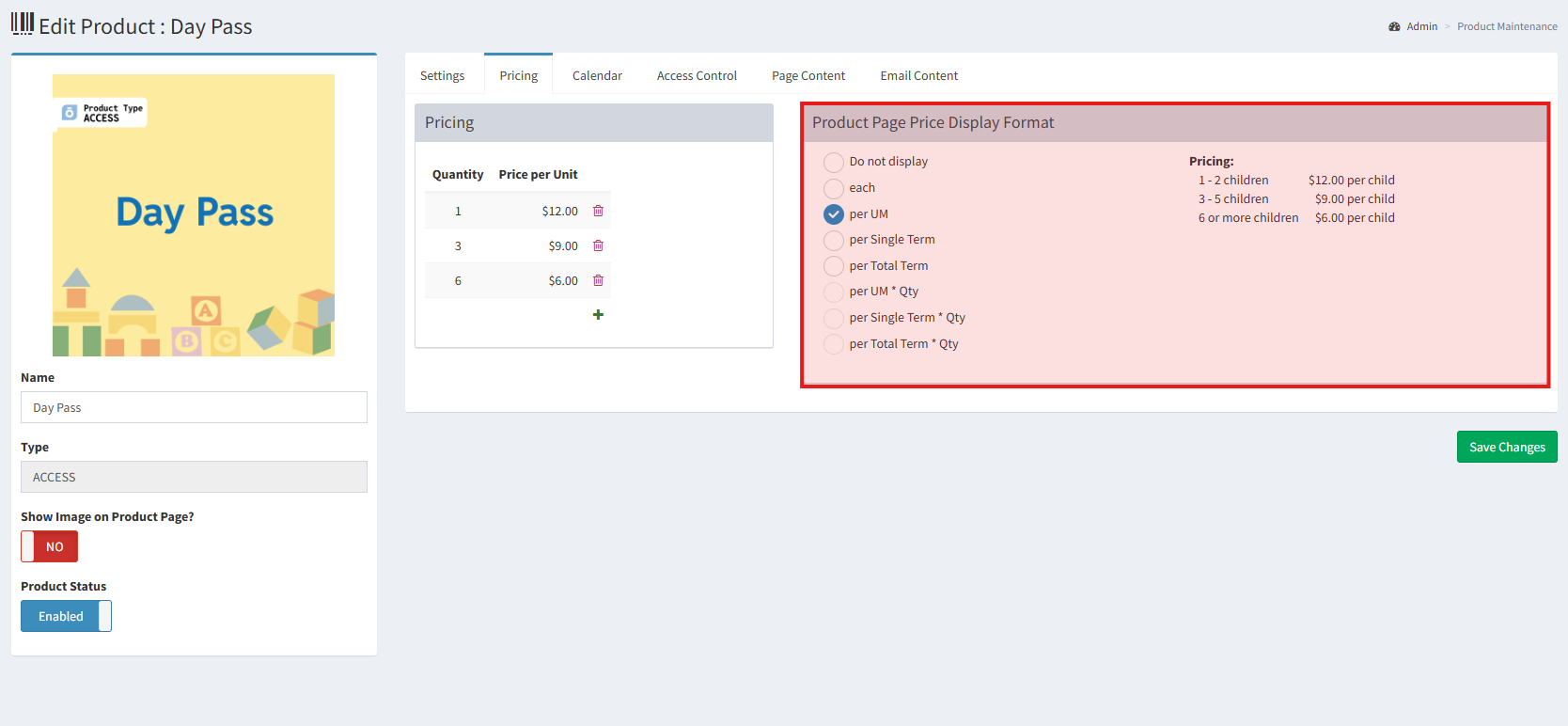 You can control how your pricing tiers appear to customers by adjusting the Product Page Price Display Format in the product’s Pricing tab.
