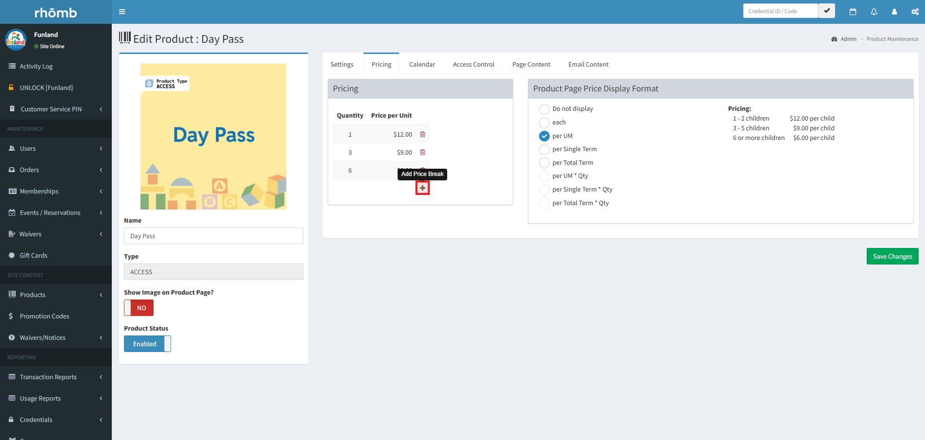Note: The product’s maximum purchase quantity must be set to the same number or higher than the desired Price Break quantity. If it is set lower, the price break option will not appear, and you will not be able to configure the discount.